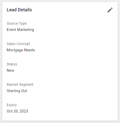 Expiry | Information about when the lead should no longer be considered active. | No |