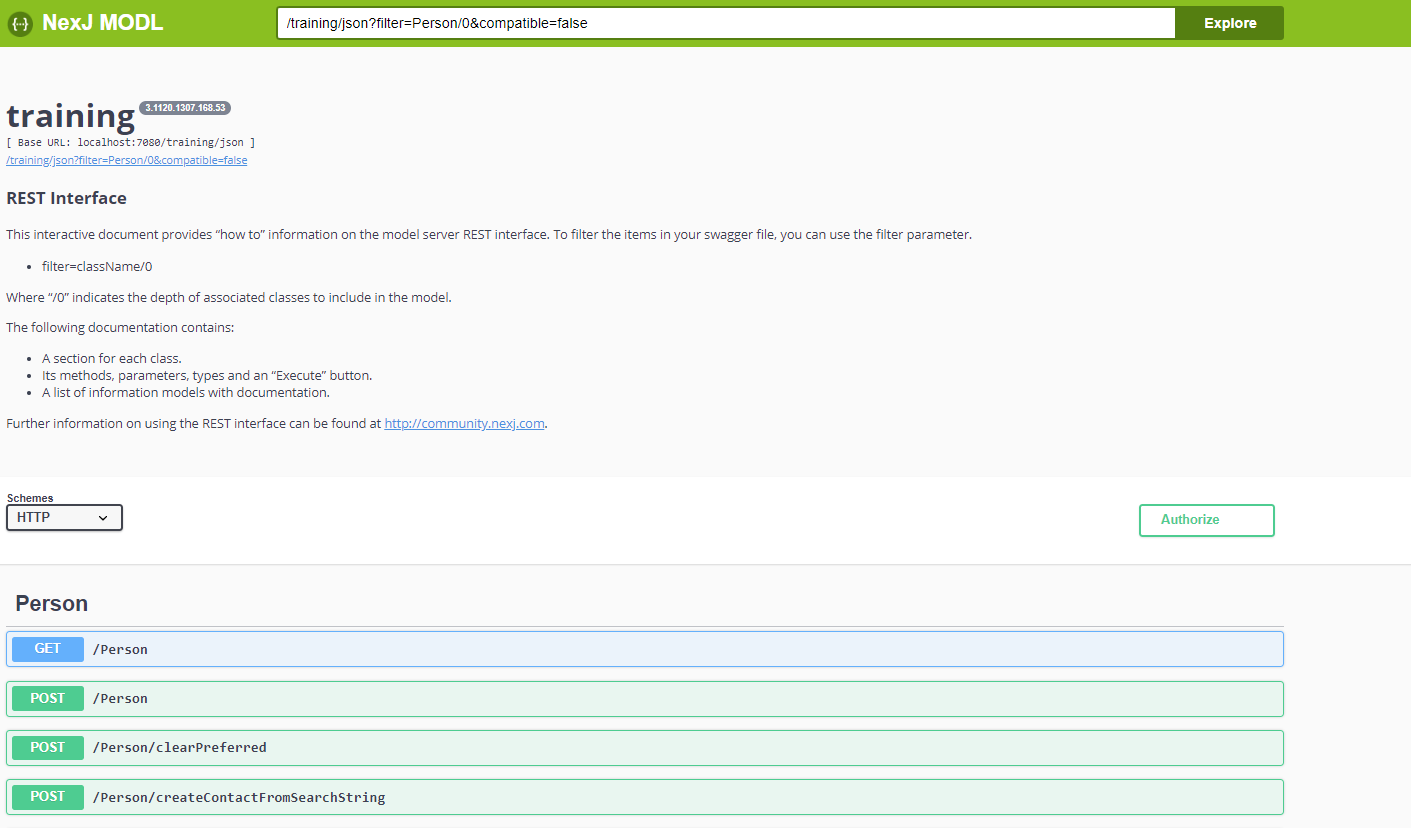 Let's start by looking at the Open API documentation for Model Services. Navigate to http://localhost:7080/training/openAPI.html. You should get a response something like...