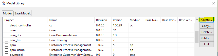 When you first create a model, you must specify an available model as a starting point for your development. This model is called the base model, because it provides the base on which you build your new model.