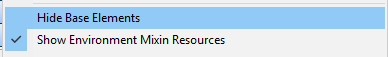 You can include mixed in elements from your current environment file in the navigator by selecting the Show Environment Mixin Resources menu item from the View Menu.
