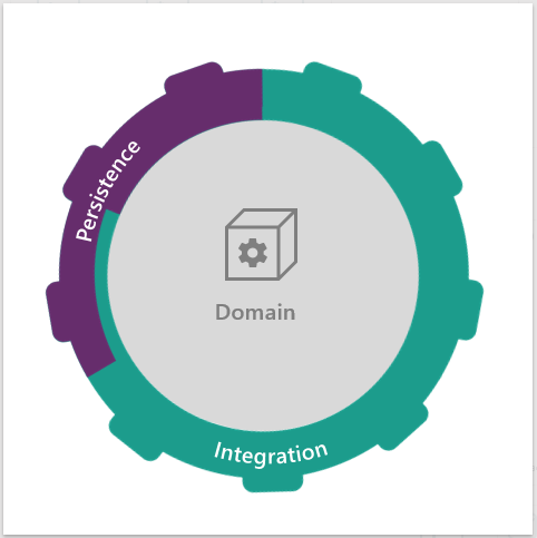 The persistence layer connects the model to physical storage using CRUD. It supports relational databases, file systems, and service persistence. The details of how persistence and integration connect to resources in a particular environment are deferred to environment files at deploy-time.