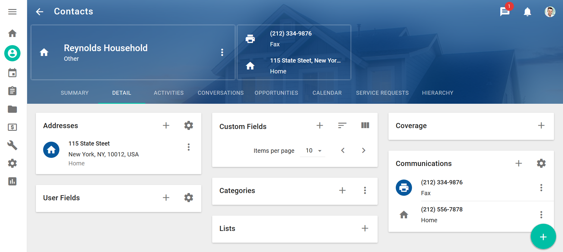 You can add and modify household information on the Contacts workspace.