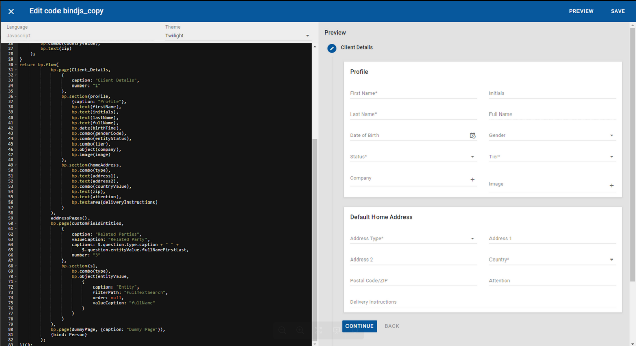 bp.page(Client_Details,     //Declares the start of the page and provides the ID Client_Details, which can be used as a reference in more advanced forms.