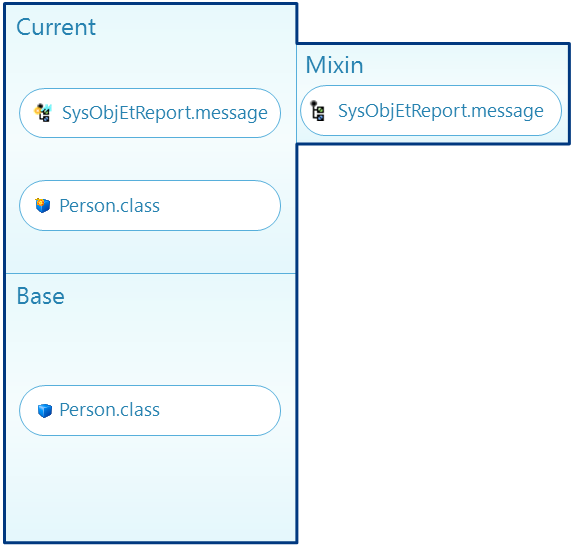 In this model, the Person class has been customized, and the SysObjEtReport message has been overridden. In both cases, the version of the resource contained in the Current model is what is used when you deploy the model.