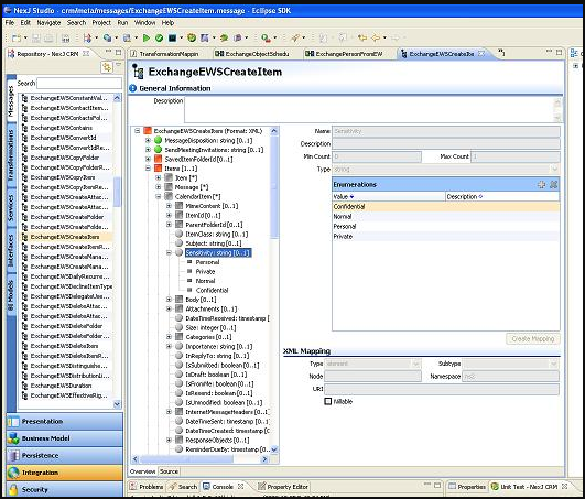 NexJ's applications are based an object model, usually mapped to an underlying database. Some of the data represented in the object model is generated by users interacting with the application directly. In a standard deployment, however, much if not most of the data will originate in other systems on a company's network. NexJ needs to be able to read information from these systems, to register and react to events signaled by these systems, to notify these systems of events in NexJ's application and to write data to these systems.