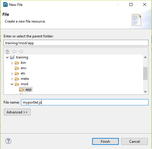 training/mod/app, create a new file calledmyportlet.js.