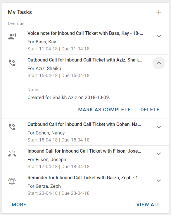 Use expandable tiles when additional information can be displayed for each list item but is not required for the overview, especially if the additional information may be of varying size. This is normally the Notes field, for example for a task or a contact.