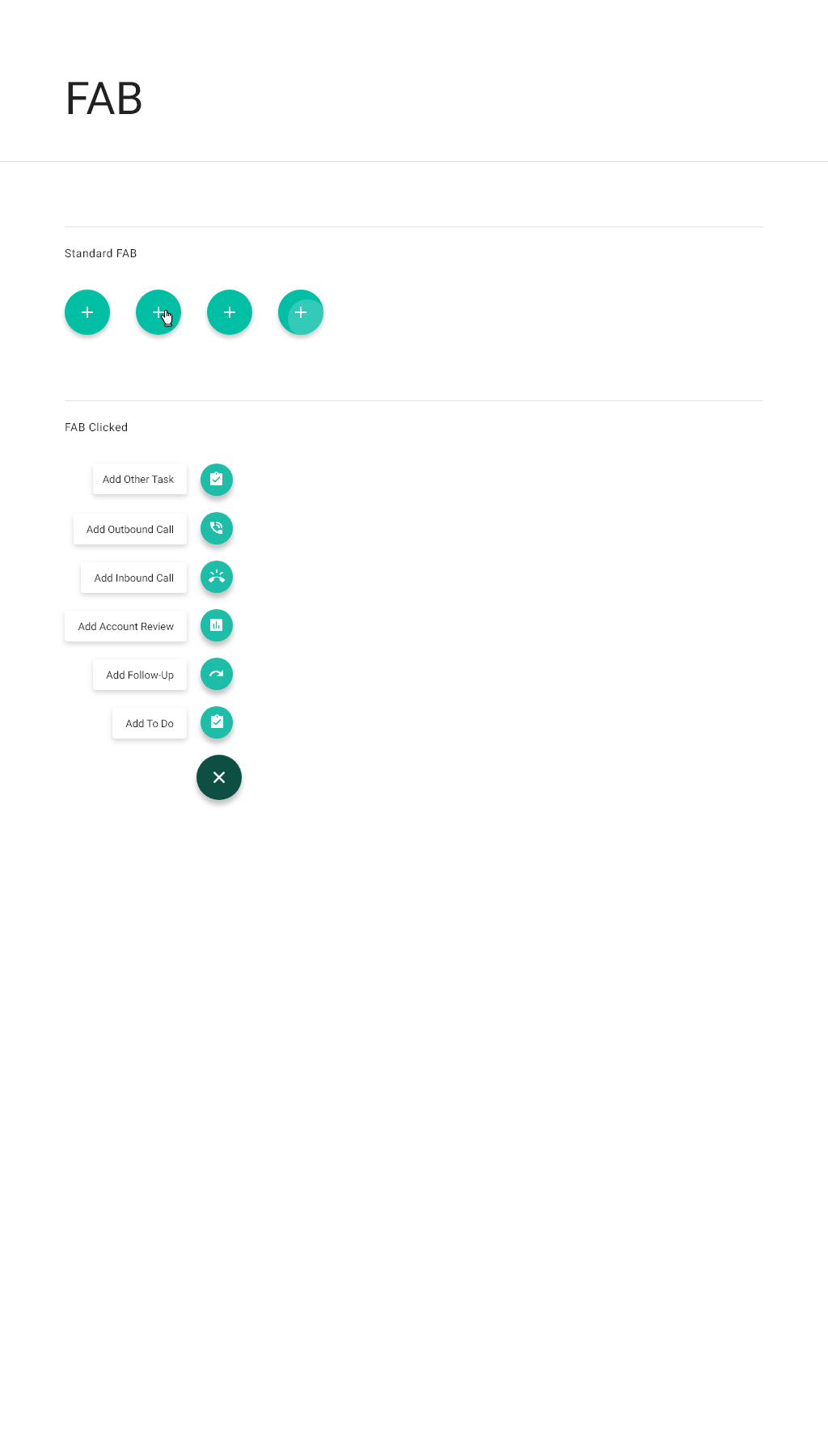 A floating action button (FAB) is used to quickly access the most common functionality for a workspace or the application. You can define a default FAB for all workspaces or have a contextual FAB for each individual workspace.