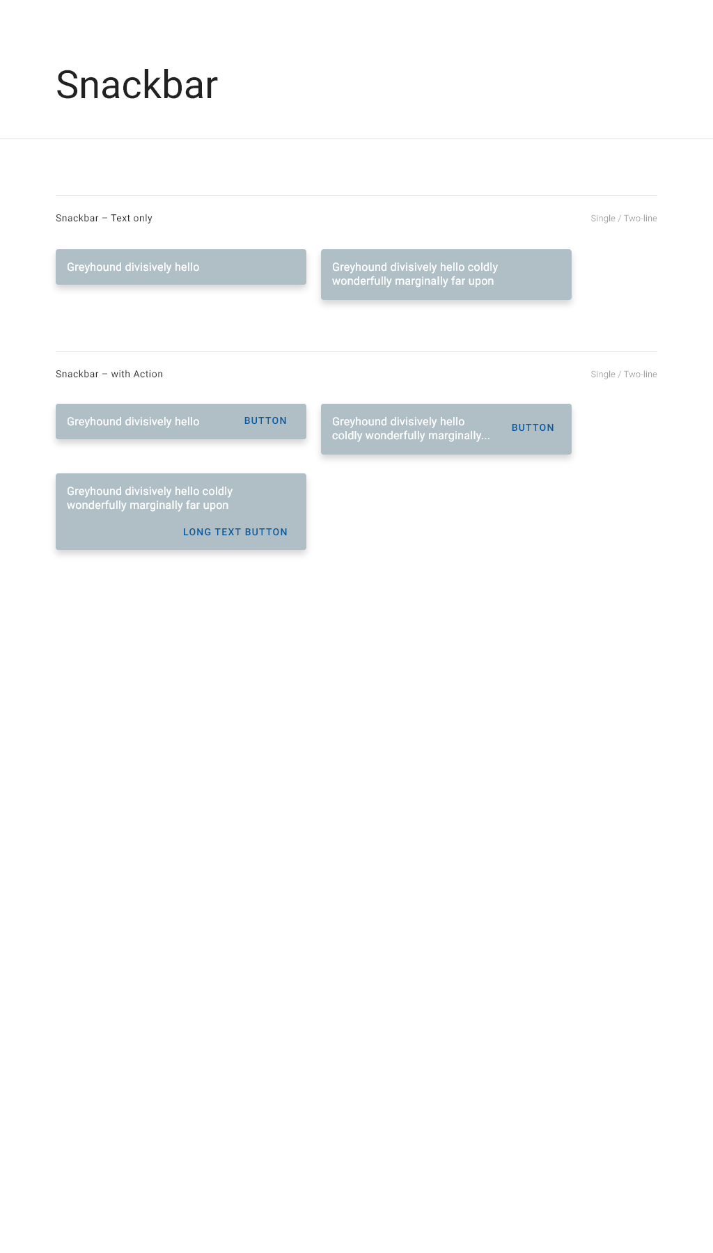 Display the snackbar to unobtrusively inform a user of a change in their status. For example, "new contact added" or "notification received". Do not use the snackbar if user feedback or action is required.