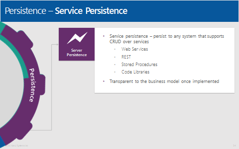 The Persistence layer enables you to model physical storage including data sources, upgrades, data extracts (dumps), and ETL activities.